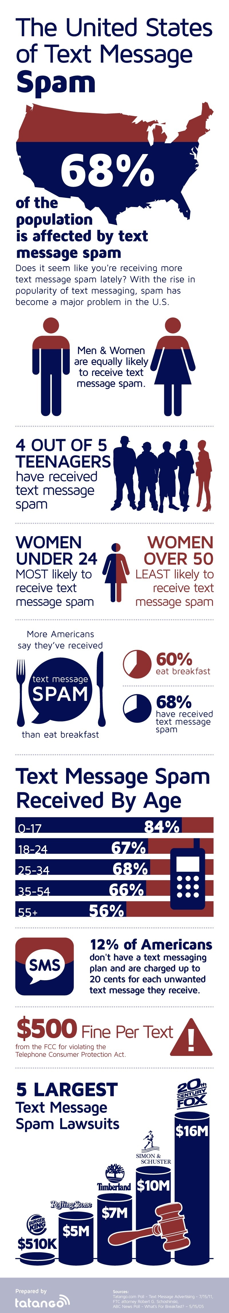 Recently the team at Tatango surveyed 500 U.S. consumers and asked them about their experience with text message spam. With a little bit of magic, we packaged all the results of our survey into the following Text Message Spam Infographic.