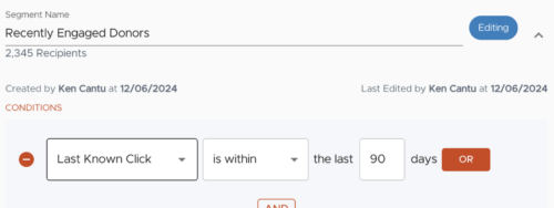 Edit a Segment’s conditions to keep it relevant and adaptable as your campaign evolves. Easily modify conditions and see real-time audience calculations directly from your Segments view to save you time when you’re updating audiences for the new year.